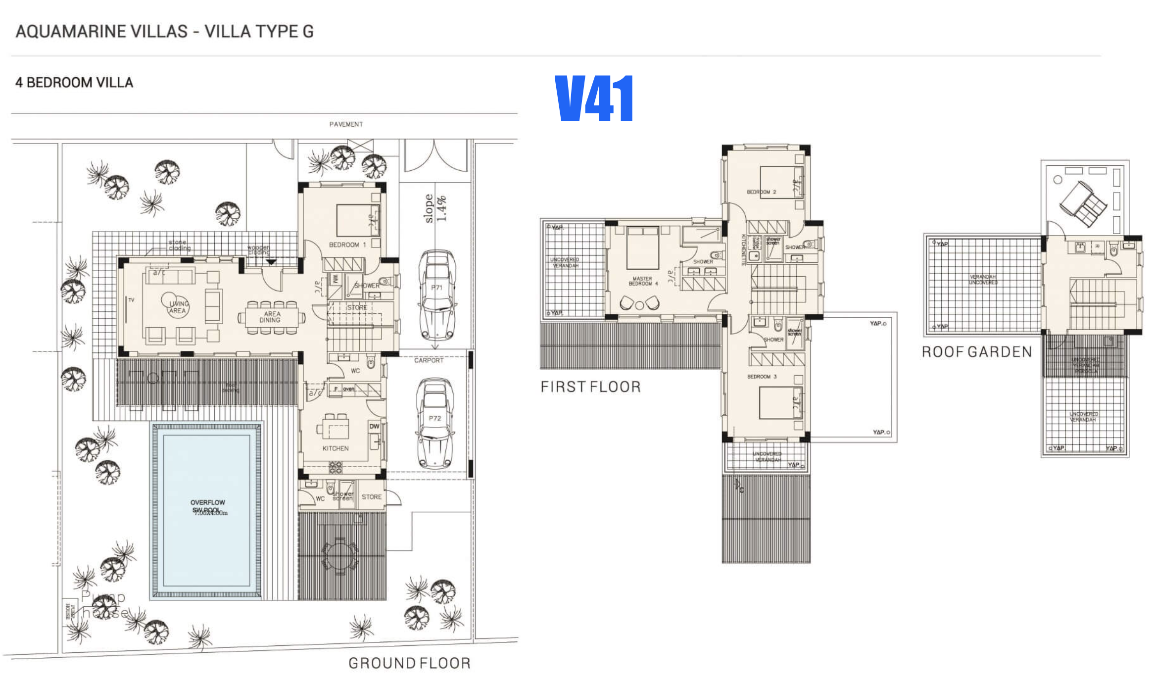 Willa V41 - cena €1,125,000+VAT , powierzchnia wewnętrzna 237m2, 4 sypialnie, powierzchnia działki 552m2.Zupełnie nowe, nowoczesne wille * Dostępny duży wybór willi * Działki o powierzchni 406 - 632 mkw.